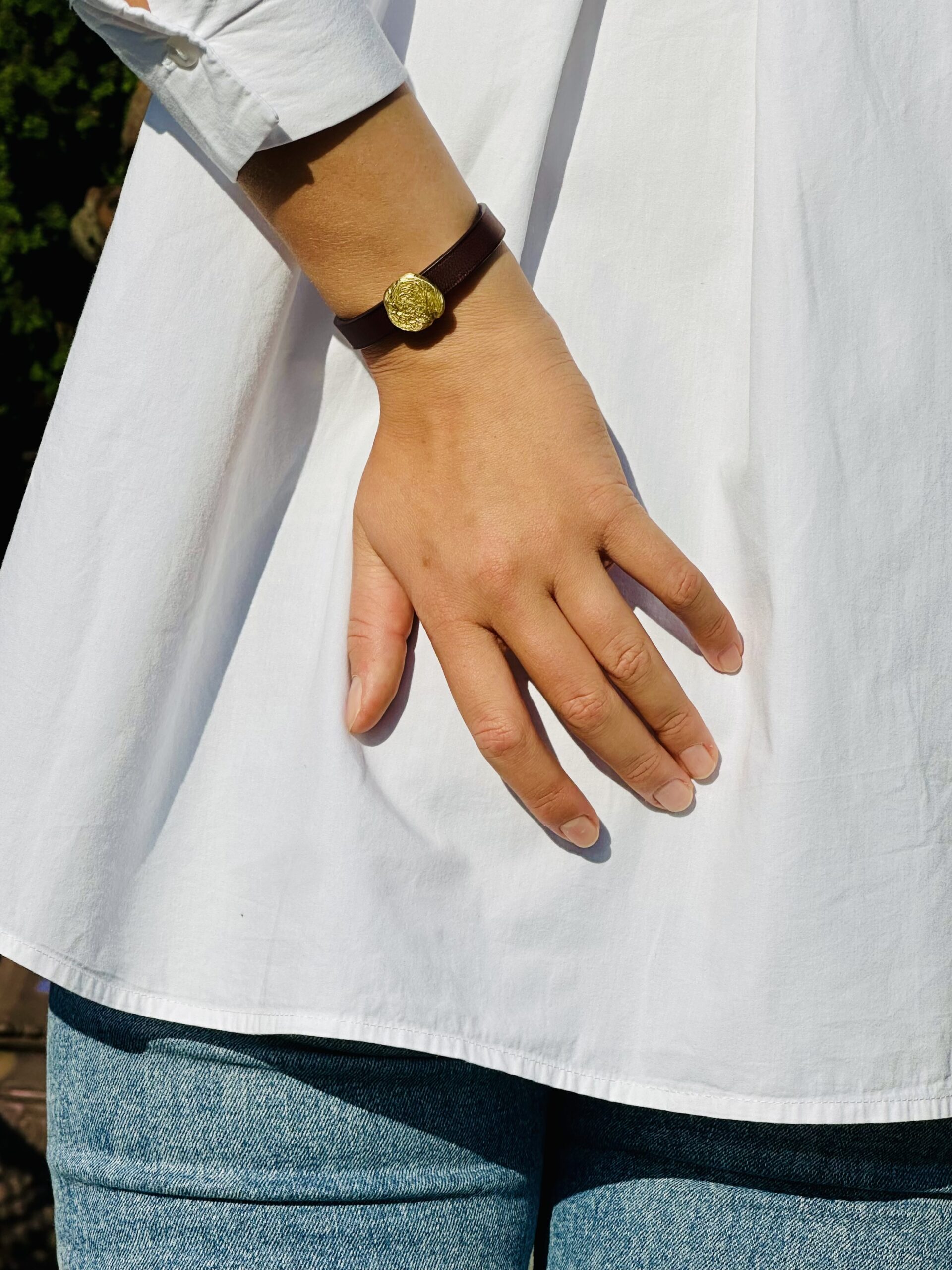 De cette rencontre est née une collection de bracelets uniques, façonnés à quatre mains, où le cuir et le bronze racontent la résilience, la solidarité et la beauté du geste artisanal.