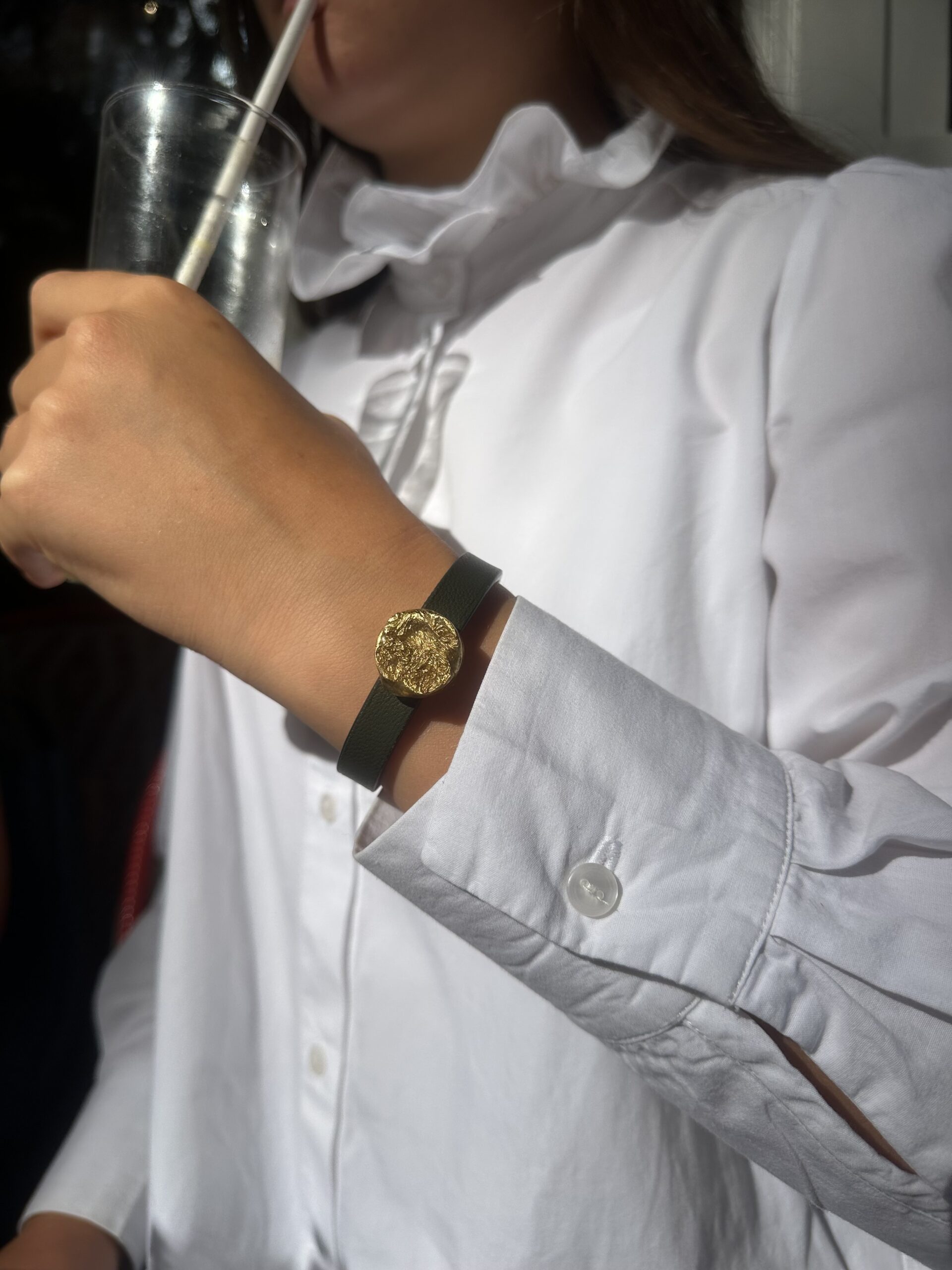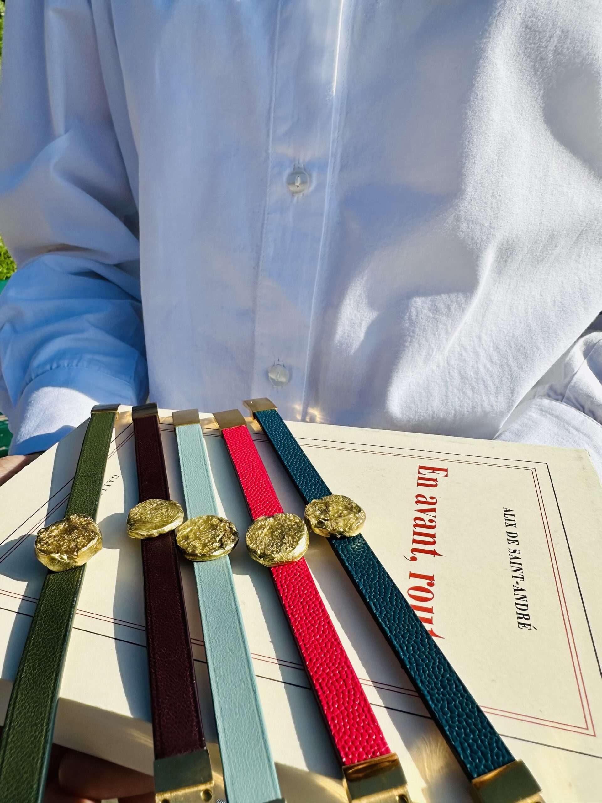 À l’occasion d’Octobre Rose, Marion Saussier, bronzière d’art, et Dorothée Hachin, maroquinière avons uni nos gestes et nos matières pour donner vie à une collection de bracelets uniques, façonnés à quatre mains qui parlent du cœur