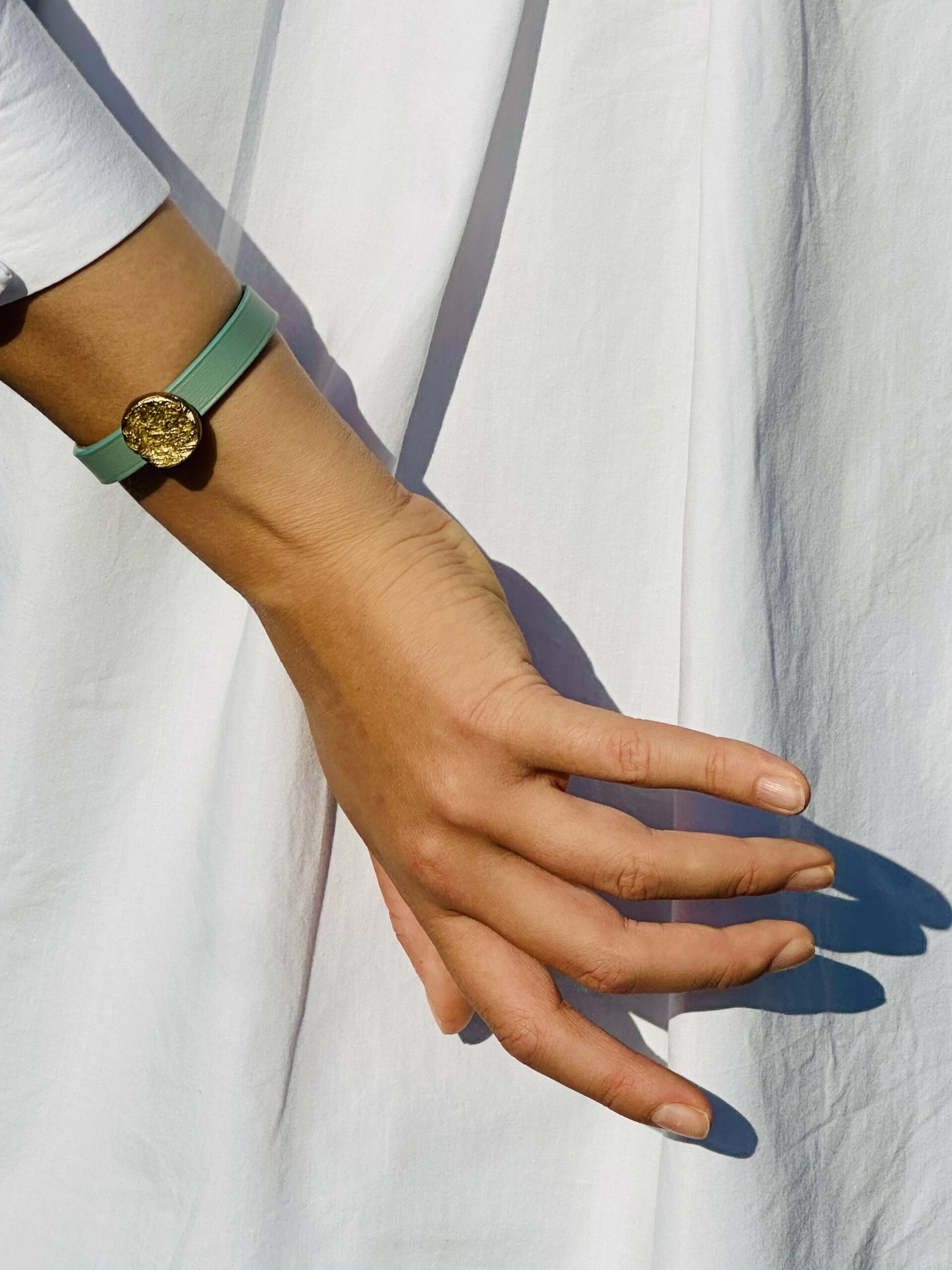 De cette rencontre est née une collection de bracelets uniques, façonnés à quatre mains, où le cuir et le bronze racontent la résilience, la solidarité et la beauté du geste artisanal.