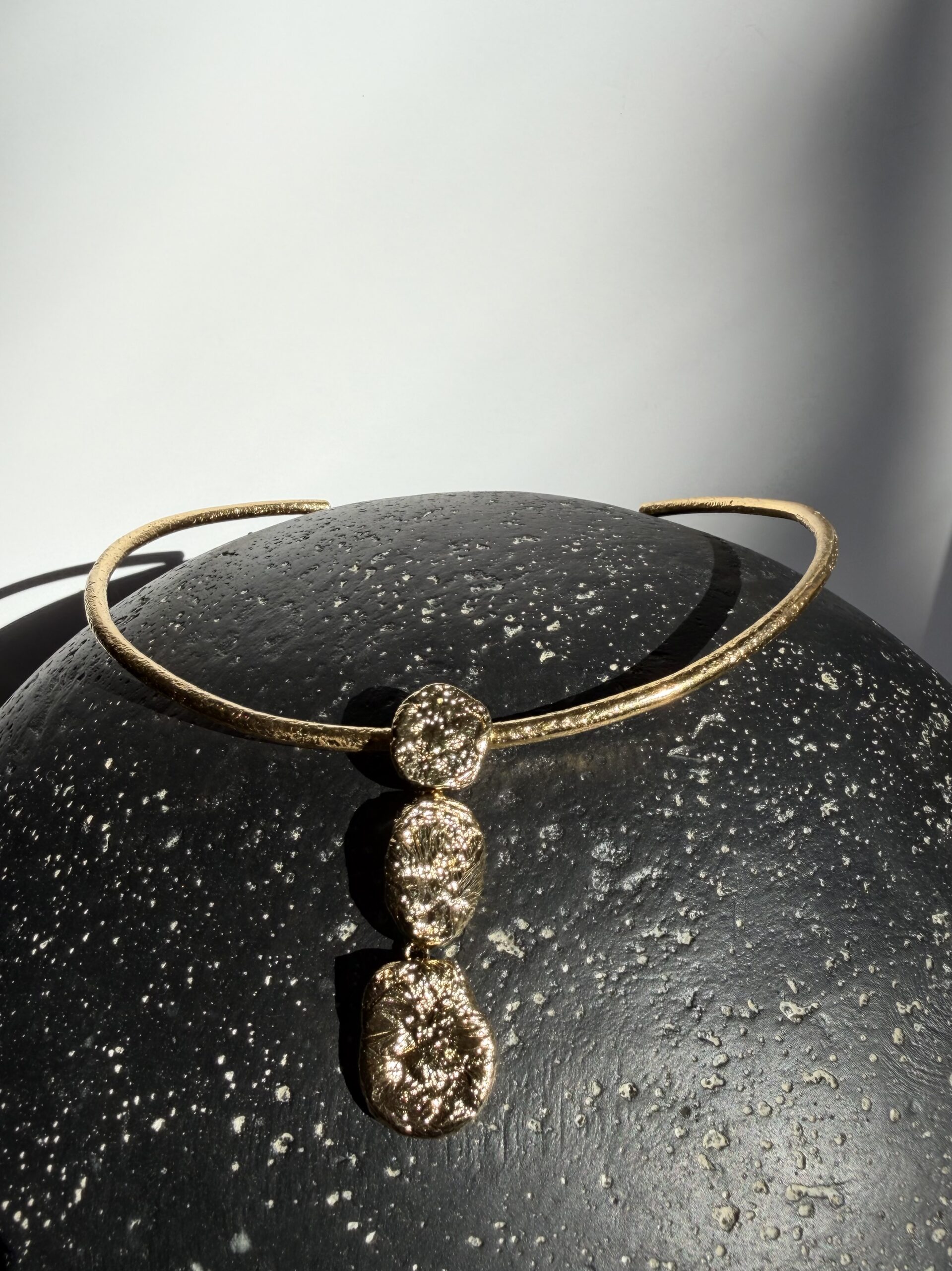 Description : Pendentif en bronze doré à l’or 24 carats, jonc ras de cou vendu séparément