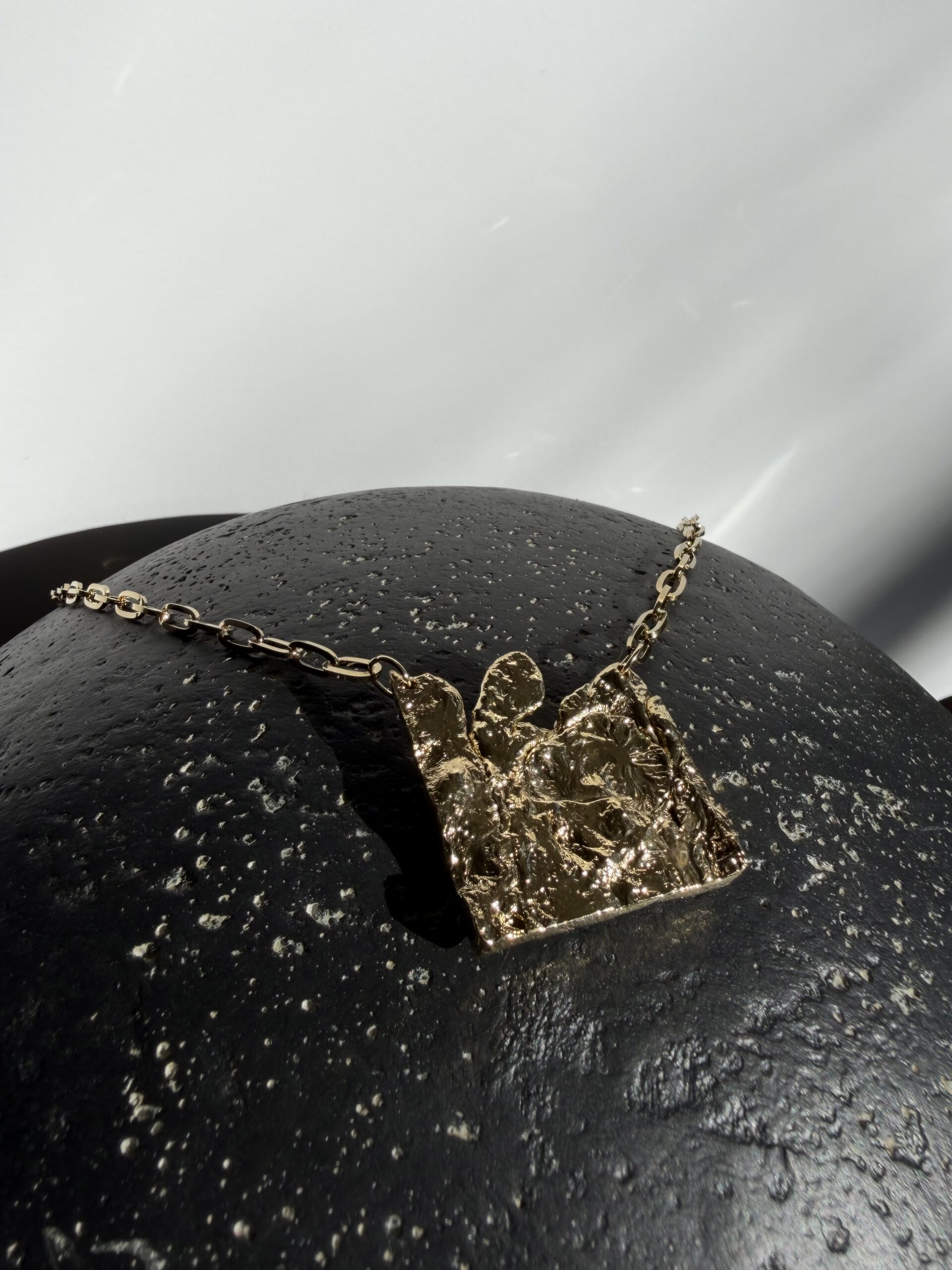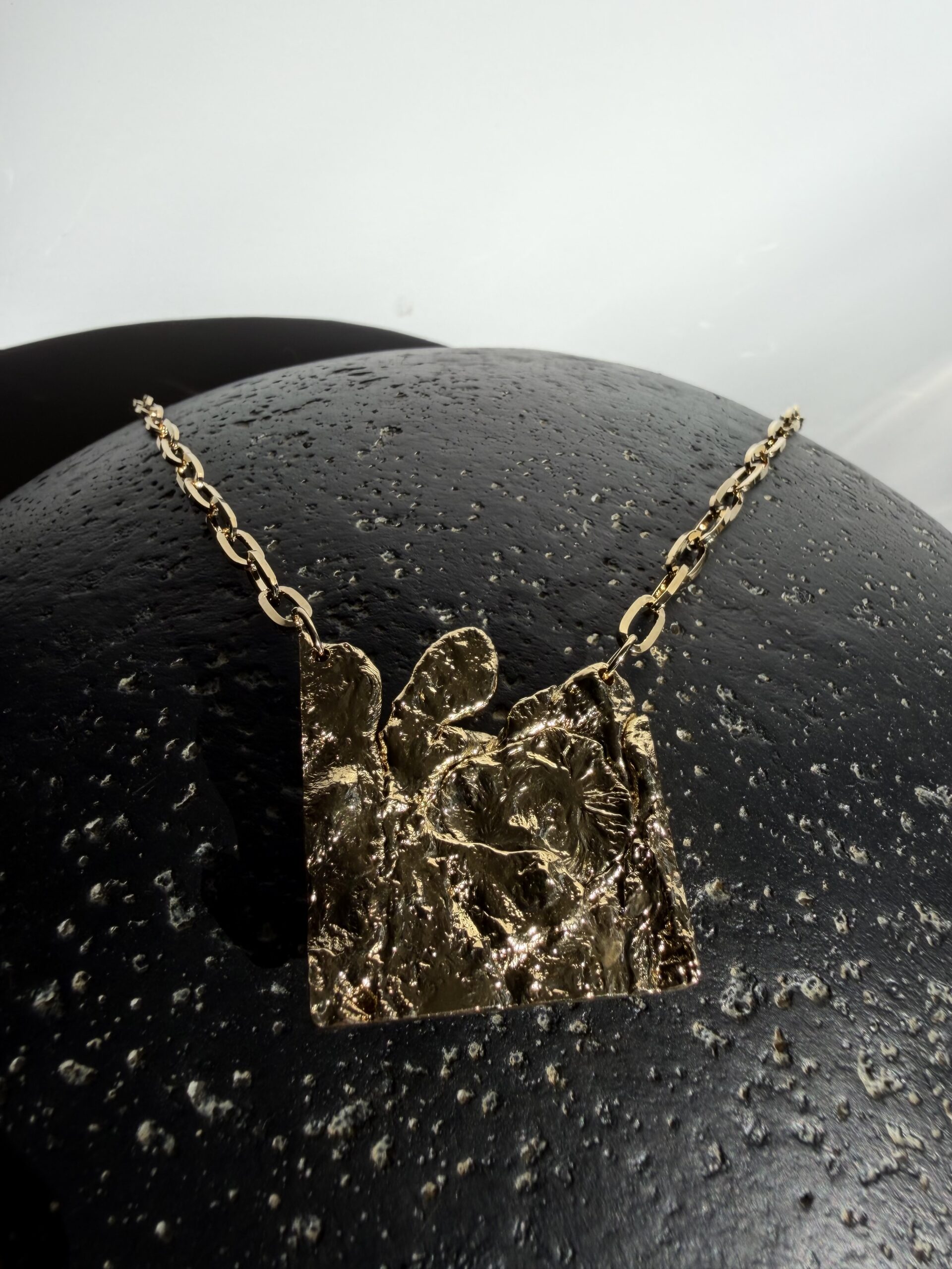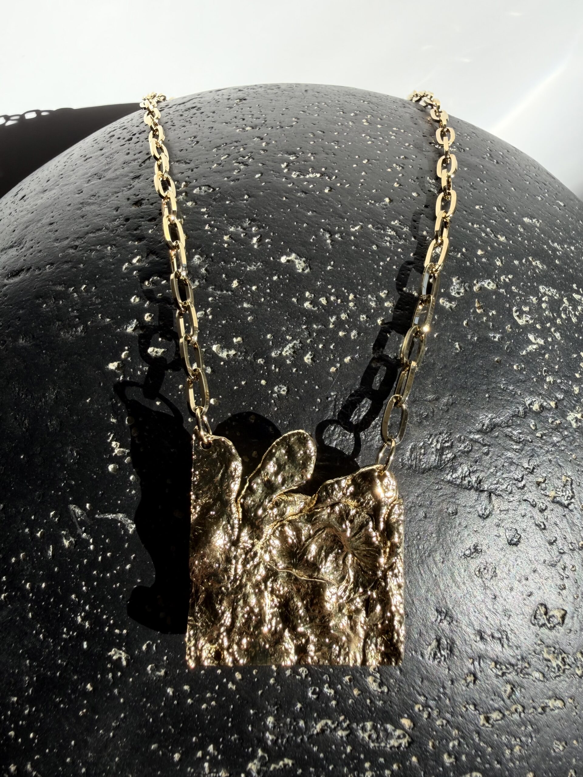 « En travaillant le bronze, je me laisse guider par le hasard et la matière. Les formes aléatoires deviennent des courbes, des creux, des reliefs que mes mains suivent et subliment. La base carrée est comme un ancrage au sol, et tout autour s’élève un petit monde suspendu. C’est mon « Paysage Céleste », un bijou qui respire, qui flotte, qui raconte la beauté de l’inattendu. »